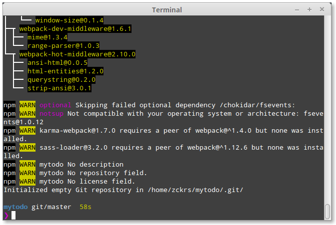 As you become more familiar with yo, you can run generators directly without the use of the interactive menu, like so:
